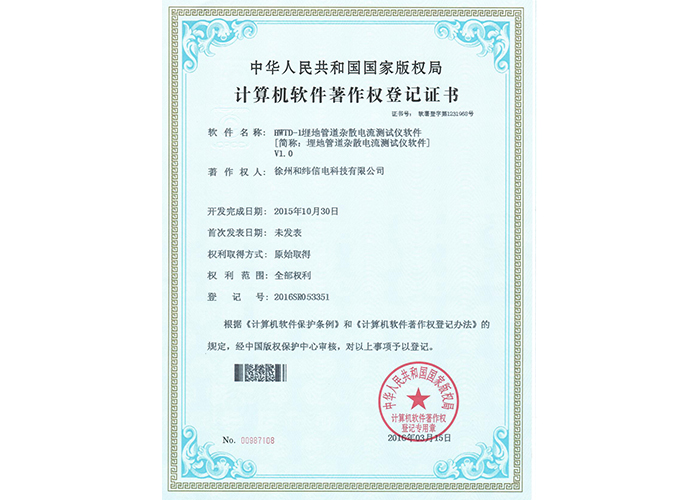 • 2016SR053351 HWTD-1埋地管道雜散電流測試儀軟件V1.0